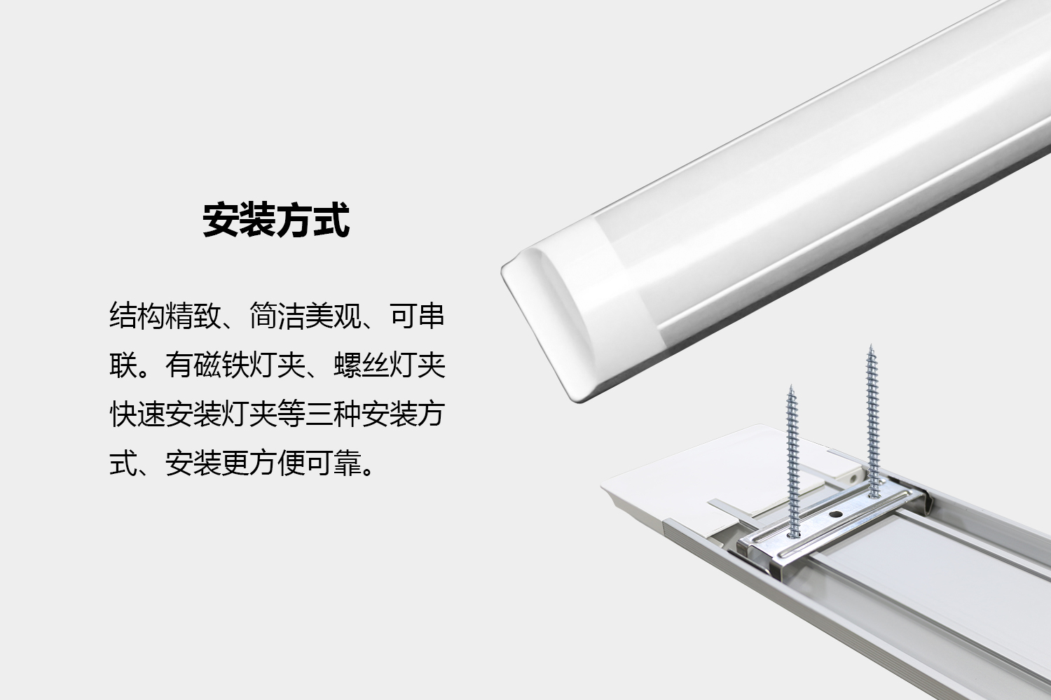 背部采用凹型安裝,掛件預(yù)裝以后燈體輕輕一壓即可完成安裝,與安裝面精密結(jié)合,不留縫隙;